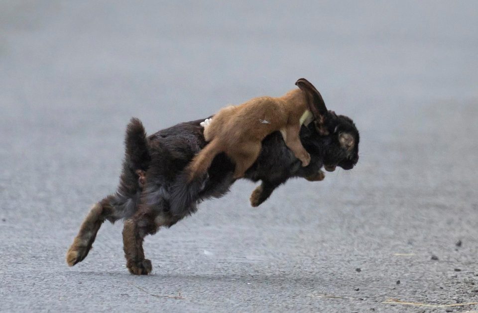В британском Нортумбердленде на дороге развернулась настоящая драма. Горностай напал на черного кролика и попытался его убить. Схватку животных случайно увидел 57-летний фотограф Грехэм Диксон. Он сразу побежал за камерой, чтобы запечатлеть редкие кадры.
