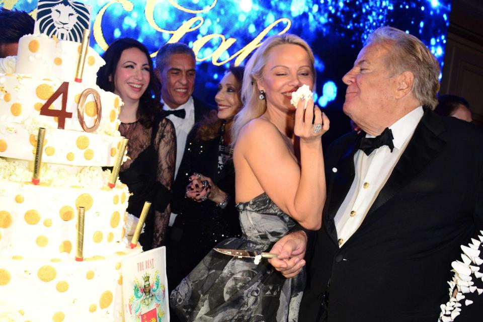 Памела выбрала платье в стиле 60-х, подчеркнувшем ее внушительный бюст. На званом ужине звезде вовсю кокетничала и не стеснялась демонстрировать свои эмоции.