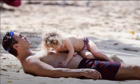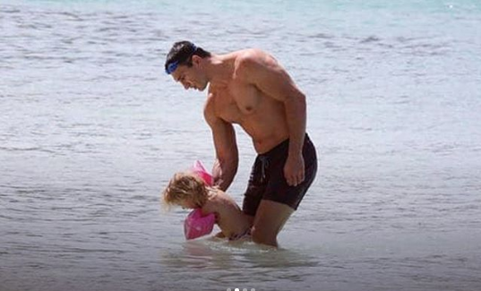 Заботливый отец учил Кайю-Евдокию плавать, а также дурачился с малышкой, лежа на песке. При этом сам с удовольствием занимался дайвингом, когда дочь была с мамой.