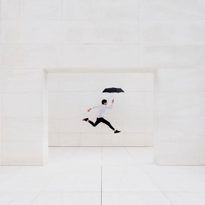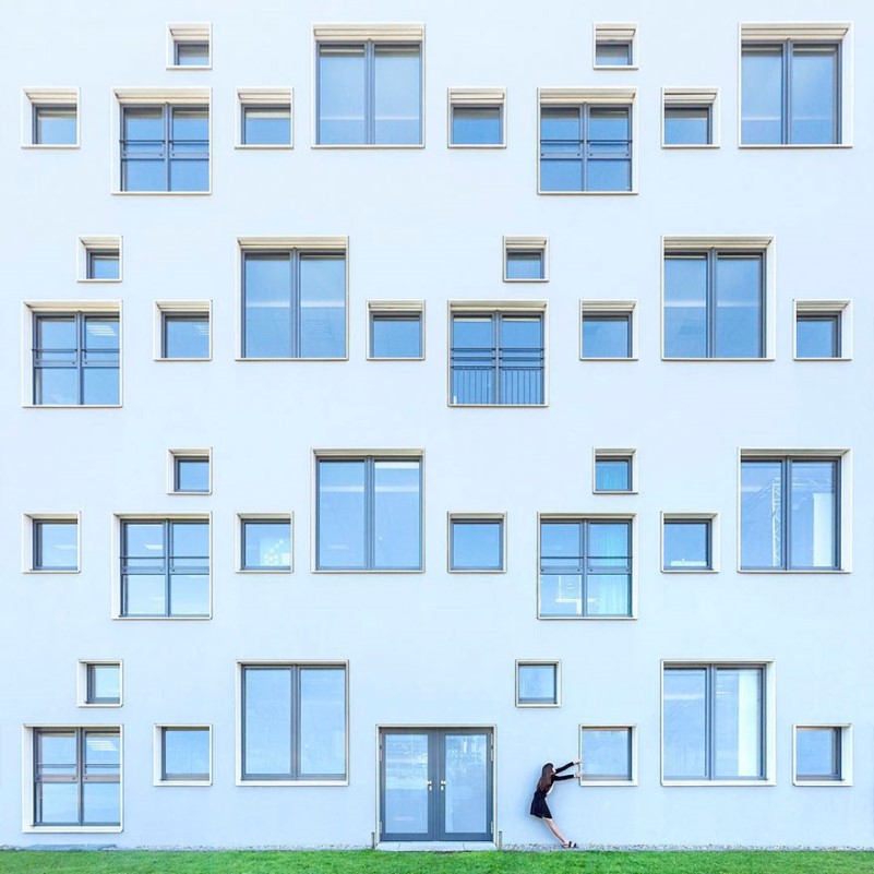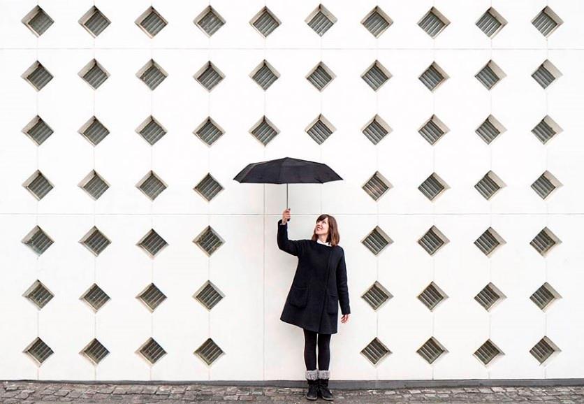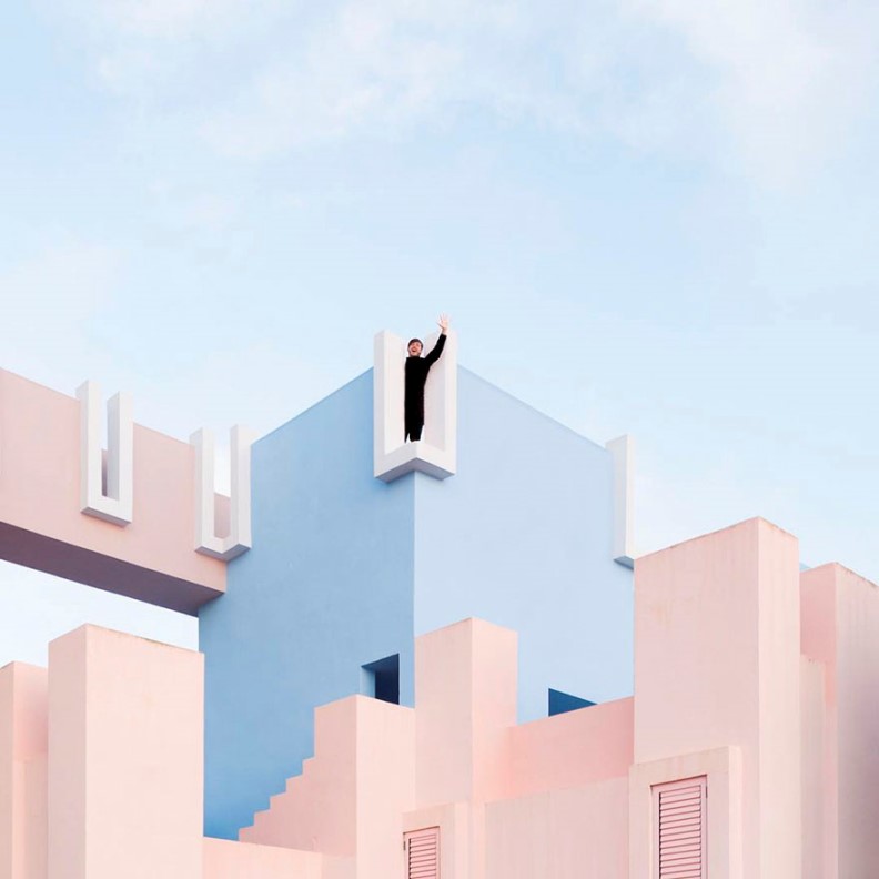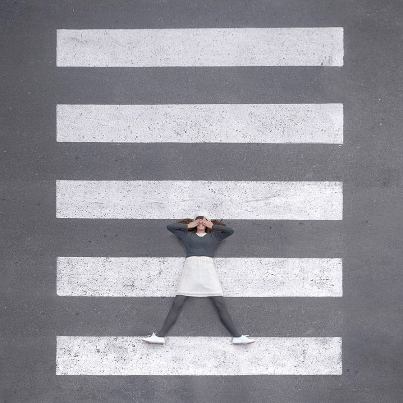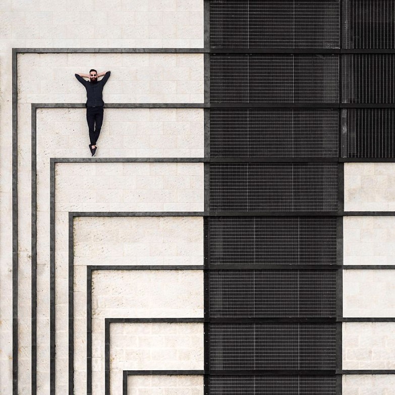 Пара испанцев Дениель Руэда и Анна Девис оригинально фотографируются во время своих путешествий. Они обыгрывают в композициях своих снимков геометрию архитектуры и разметки на улицах. Часто они наряжаются в тон с окружающей средой, как бы сливаясь с ней.