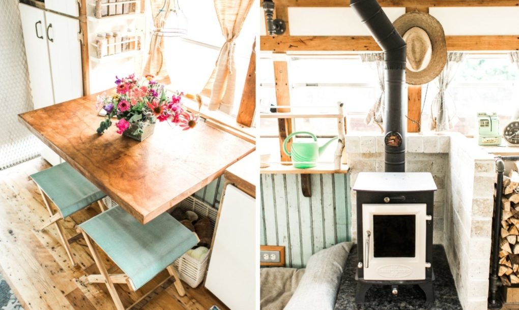 Гордостью необычного дома на колесах стала душевая кабина из древесины южной желтой сосны, которую Бен изготовил собственноручно. Изюминкой жилища стала миниатюрная дровяная печь, расположенная в центре жилого пространства. Она способна обогреть весь автобус, что особенно выручает в холодное время года.