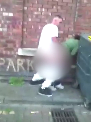 Эта парочка абсолютно не стесняясь случайных прохожих, занялась сексом при дневном свете в центре британского городка Уиган. Страсть настигла их на заднем дворе индийского ресторана прямо возле мусорных баков. Об этом сообщает The Sun. Мужчина наклонил женщину, приспустил штаны и приступил к половому акту. Случайные зрители снимали все действие на камеры, но его это ничуть не смущало.