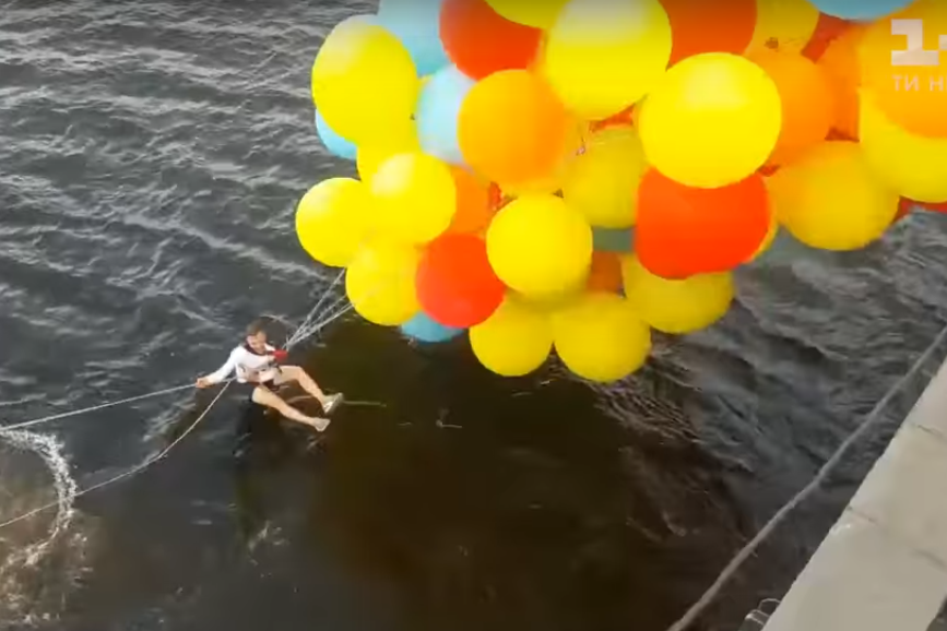 Парень из Киева хотел оригинально обыграть своё предложение руки и сердца. Он планировал перелететь через Днепр на шарах, в то время, как его избранница ждала бы его на другом берегу.