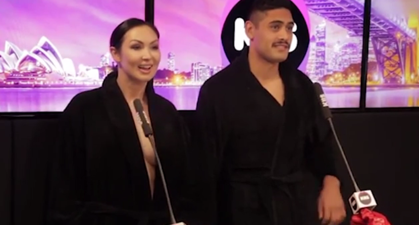 Так произошло и у Ясмин и Азана. Девушка сбросила всю одежду первая, парень последовал ее примеру. Затем новоиспеченная парочка начала так страстно целоваться, что телеведущие Кайли и Джеки О испугались, что молодые люди займутся сексом на глазах у слушателей.