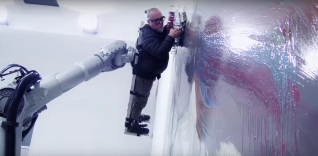 Промышленный робот водит вдоль стены сербским художником Драганом Иличем, сжимающим в руках кисти с краской. На своем сайте художник пишет, что в ходе перформанса он подвергал себя опасности: в случае поломки или сбоя в работе машины (ее «непослушания») Илич мог пострадать.