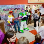 Развлечения для детей, аниматоры, подарки и сладости создали атмосферу настоящего праздника. Кульминацией вечера стало долгожданное появление звездных актеров дубляжа — DZIDZIO, LILU, и Павла Сушко, которых обожают юные зрители.
