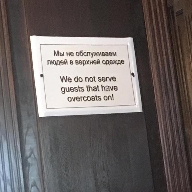 «Необычная надпись в ресторане, где мы обедаем, в Одессе, Украина, показывающая, насколько суровыми здесь бывают зимы!»
