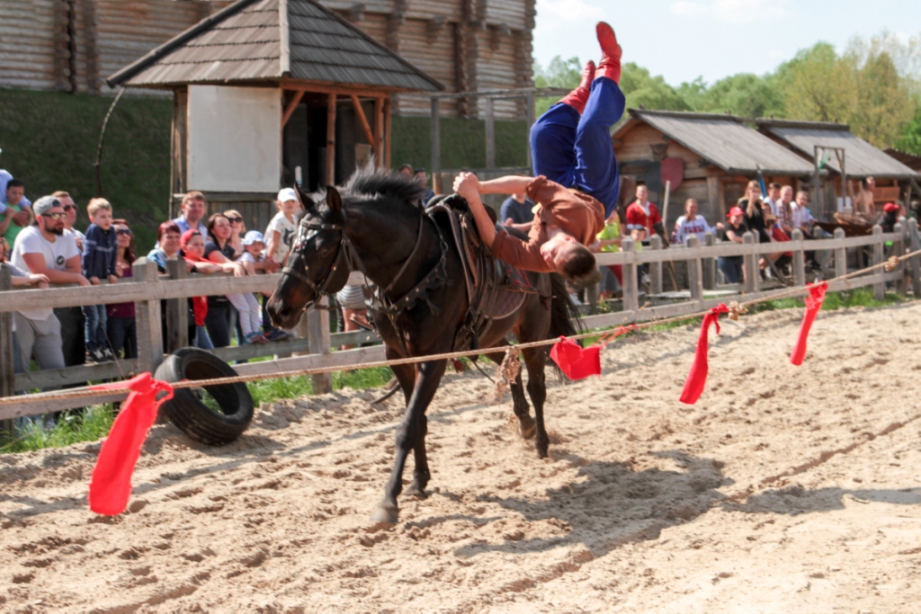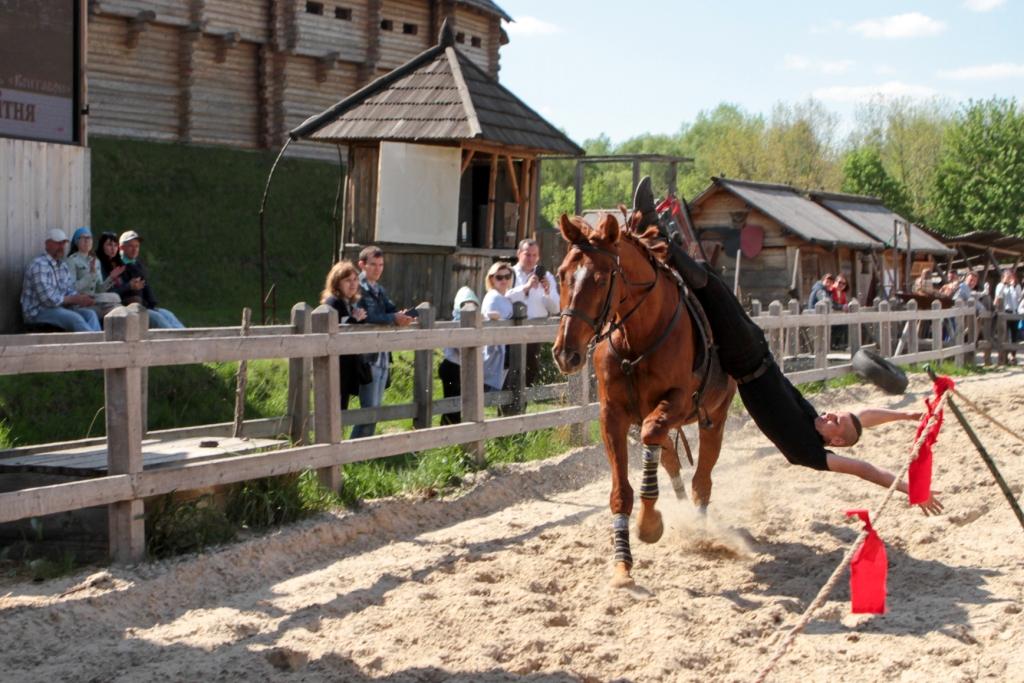 На протяжении двух дней отважные всадники и всадницы, взрослые и совсем юные, будут соревноваться в искусстве верховой езды и джигитовки, поражая зрителей своим мастерством, демонстрируя полное взаимопонимание и взаимодействие с лошадью. На полном скаку виртуозные наездники будут проскальзывать под конем, выстраивать «пирамиды», разворачиваться в седле задом наперед, вверх ногами. Только в Древнем Киеве гости воочию увидят умопомрачительные трюки: «французские кресты», «арабески», «обрывы», «пистолеты» и многое другое.