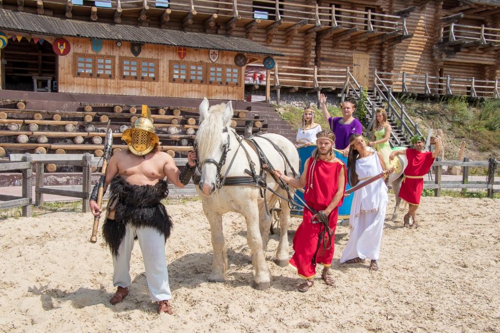 В субботу на 20:00 Княжество приглашает еще и на отдельную программу – уникальный спектакль в средневековом амфитеатре со спецэффектами, с постановочными боями и с участием конных каскадеров.