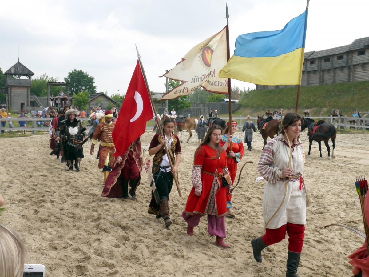 Конный турнир собрал большое количество участников, среди которых были и лучшие мировые стрелки, в том числе и четыре спортсмена из Турции. Как сказал президент и основатель парка «Киевская Русь» Владимир Янченко, цель фестиваля – напомнить современникам о корнях.