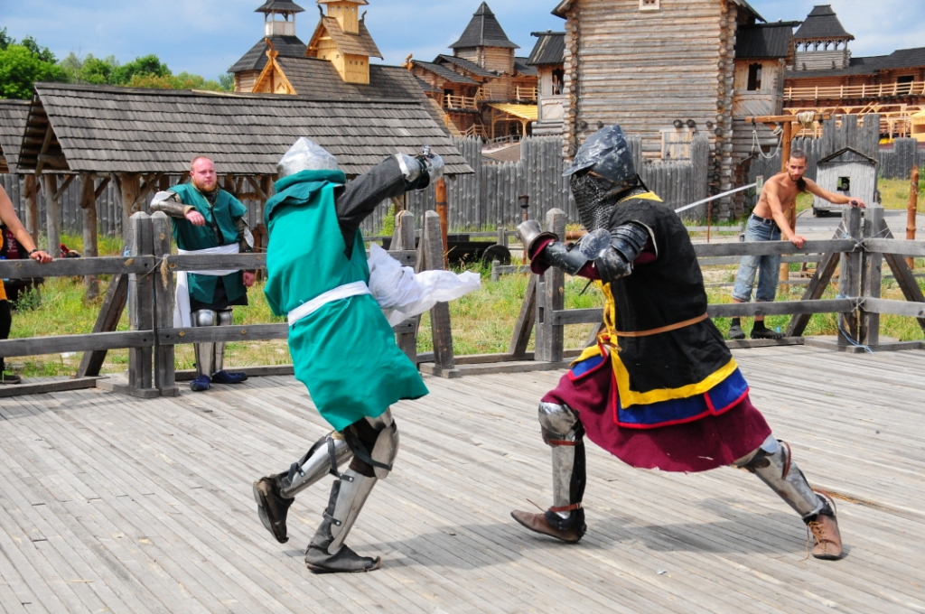 Ярким бонусом к зрелищной программе станут настоящие средневековые бои в рамках Межрегионального турнира «Витязь Киевского Детинца». Ориентировочно с 14:00 до 16:00 на Детинце Киева рыцари-спортсмены сойдутся в одиночных боях, а около 16:30 на большом ристалище Предградья – в групповых соревнованиях «5х5». Гостей ждут полноконтактные поединки в настоящих рыцарских доспехах, с использованием средневекового оружия. Соорганизатором соревнований выступает Всеукраинская федерация средневекового боя.