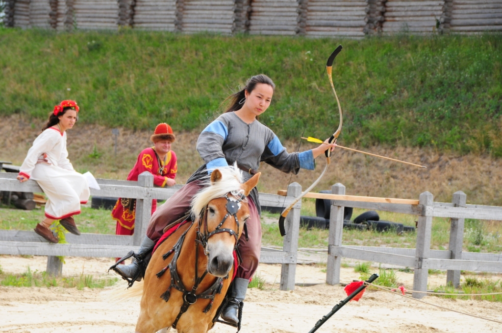 Всадники Князя Киевского подготовили интересную и увлекательную программу, во время которой покажут конные разъездки, построение, продемонстрируют мастерство владения холодным оружием, элементы прикладной джигитовки (трюки на лошадях) и конного рыцарского турнира. Кроме того, взору гостей представят возрождаемое в «Парке Киевская Русь» древнее боевое искусство – верховую стрельбу из лука. Конно-лучное «троеборье» пройдет в следующих направлениях: классическая стрельба, командная стрельба и княжеская охота.