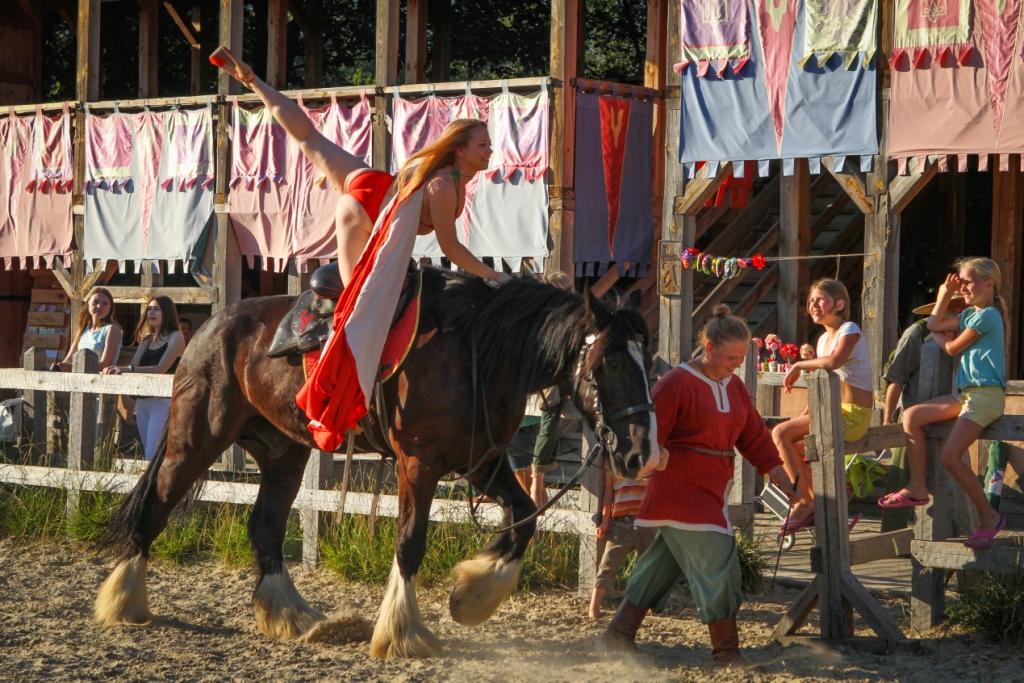 В субботу, 23 июня, пройдет шоу-конкурс «Амазонки». Эта часть программы будет интересна не только мужчинам, а и мамам с детками. Ведь это не типичный конкурс красоты, а яркое шоу, во время которого в увлекательной форме девушки продемонстрируют эрудицию и знание истории Киевской Руси, физическую подготовку во время спортивного квеста, пластичность и умение танцевать во время зажигательного флеш-моба. И конечно, предстанут во всей красе, дефилируя в средневековых платьях и костюмах на свободную тематику. В субботу можно будет не только насладиться программой с участием девушек, театра и конных выступлений, но и еще и поболеть за одну из «красных девиц».