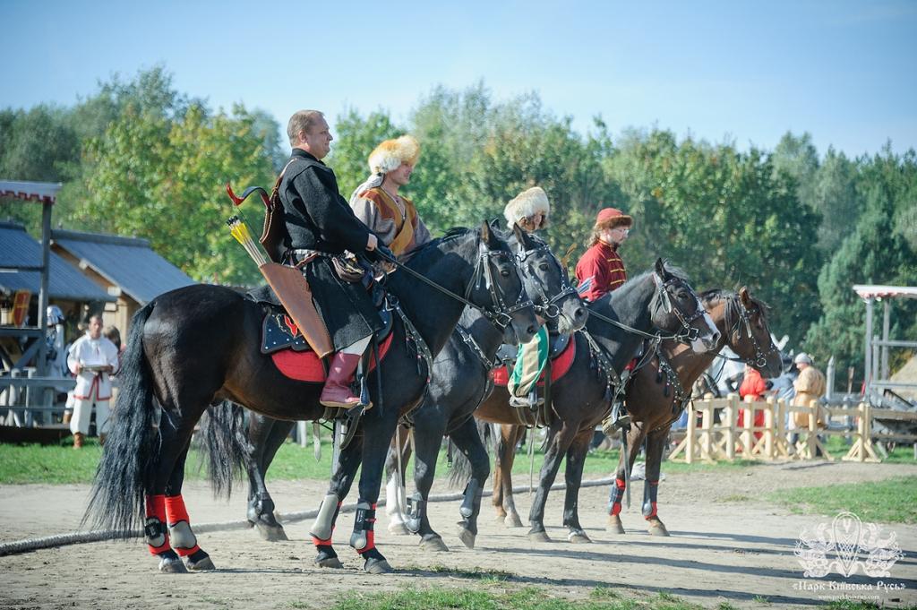 Турнир конных лучников — это крайне сложная задача для участников соревнований и, в то же время, азартное и захватывающее зрелище для зрителей. Стрельба конных лучников будет проходить в дневном и ночном формате. Кроме того, каскадеры и актеры конно-трюкового театра Древнего Киева покажут свое мастерство во владении различными видами средневекового оружия: луками, мечами, копьями. Также всадники и их верные кони покажут элементы боевой джигитовки, демонстрируя трюки, которые сейчас используются в показательных выступлениях, а в прошлом помогали в атаке или спасали жизни в бою.