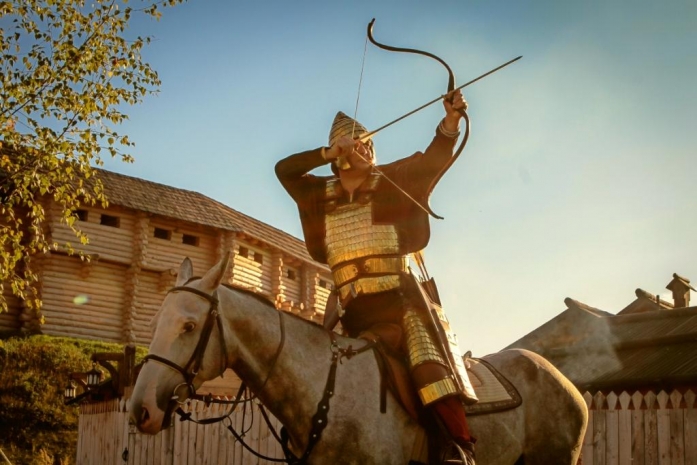 С 10:00 Древний Киев открывает ворота для посетителей, а значит можно будет пройтись по улочкам города, покататься на лошади и пострелять из лука, отчеканить монету и пролететь на канатном спуске над озером, насладиться средневековыми блюдами и посетить музеи на территории, примерить костюмы времен Киевской движении и устроить яркую фотосессию. А с 13:45 начнется программа с выступлениями конного и пешего театра, играми и развлечениями с гостями, танцевальными флэш-мобами и, конечно, с ключевым событием мероприятия — турниром по верховой стрельбе из лука.