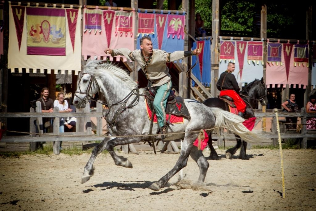 Древний Киев в Княжестве «Киевская Русь» знаменит не только тем, что здесь возводится величественная архитектура средневекового Киева и воссоздается атмосфера Киевской Руси. В Княжестве также возрождают и развивают захватывающие древние виды спорта, в частности конные боевые искусства.