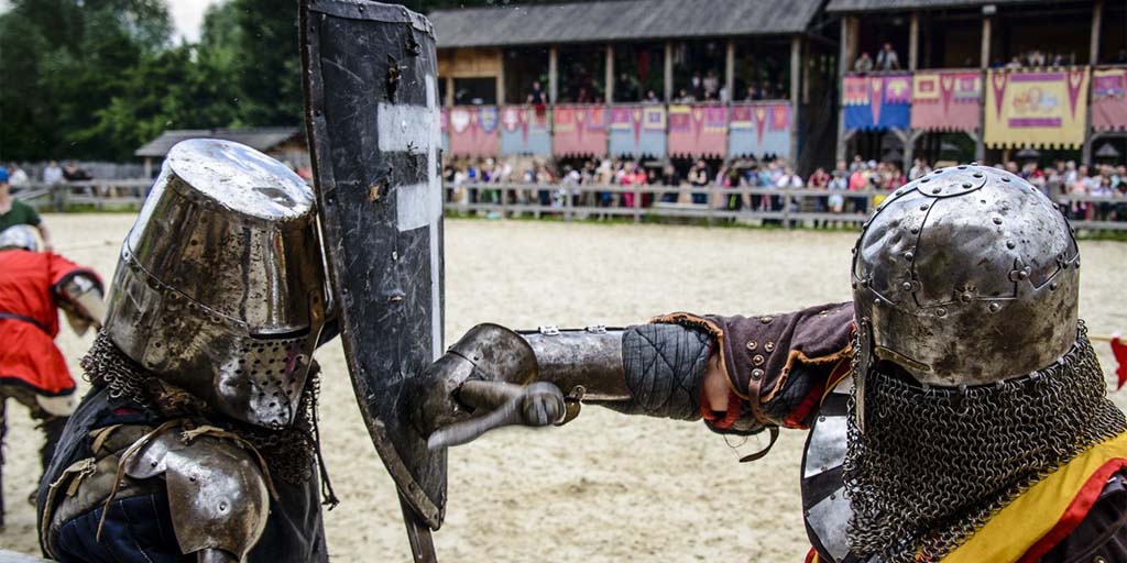 Программа начнется в 13:30, а уже с 14:00 на Детинце Киева начнутся зрелищные рыцарские бои — поединки спортсменов в доспехах в рамках турнира по средневекового боя «Витязь Киевского Детинца». Соорганизатором турнира выступает Всеукраинская федерация средневекового боя.