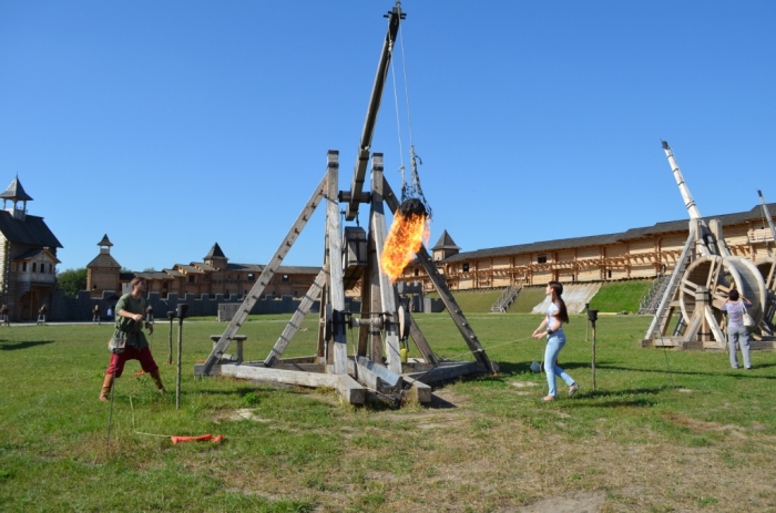 В завершение программы гостей ждет яркое шоу со стрельбой горящими ядрами из требушета – единственного действующего в Украине осадного орудия.