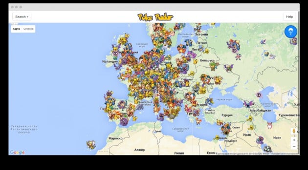 Карта расположения покемонов создаётся силами игроков и отображает точки, где им удалось найти самых ценных монстров. В левом верхнем углу находится выпадающее меню, с помощью которого можно отфильтровать результаты. Таким образом, есть возможность охотиться с помощью Poke Radar только на нужных вам покемонов.