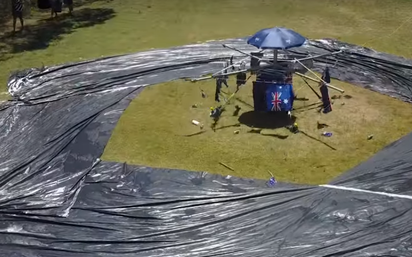 Широкую популярность в социальных сетях приобрело видео, в котором показывается водная карусель. Она расположена на ровной лужайке. В её центре установлен вращающийся механизм, в по периметру разложены широкие полотна полиэтилена. Ухватившись за трос, люди скользят по мокрому пластику.