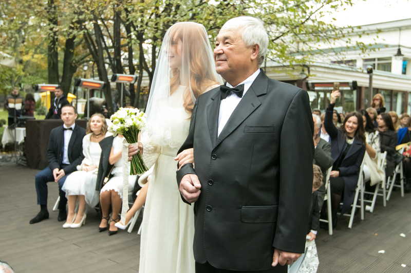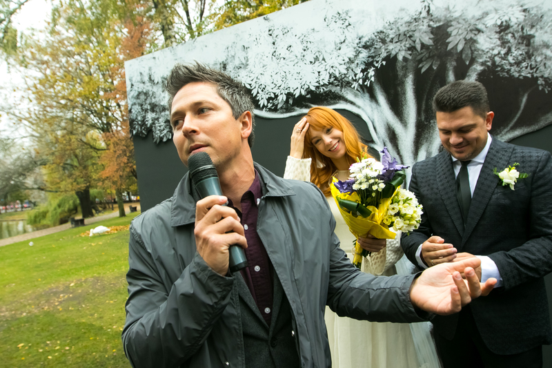 Место проведения церемонии пара выбрала романтичное- киевский ресторан «Прага» на территории живописного ВДНХ. Мероприятие прошло в форме бранча, что является нетипичным форматом для Украины. Молодые в один день успели за несколько часов провести выездную брачную церемонию, пообщаться с гостями на фуршете, а после завершения официальной части отправились в свадебное путешествие в Рим.