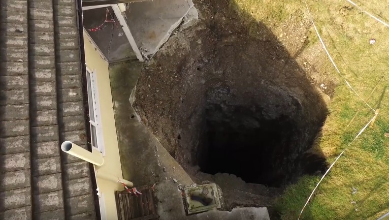 В английском графстве Корнуолл во дворе дома, предназначенного для продажи, открылся ствол шахты глубиной в 100 метров. Под землю провалилась и часть гаража. Об этом сообщает BBC.