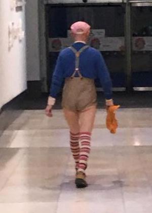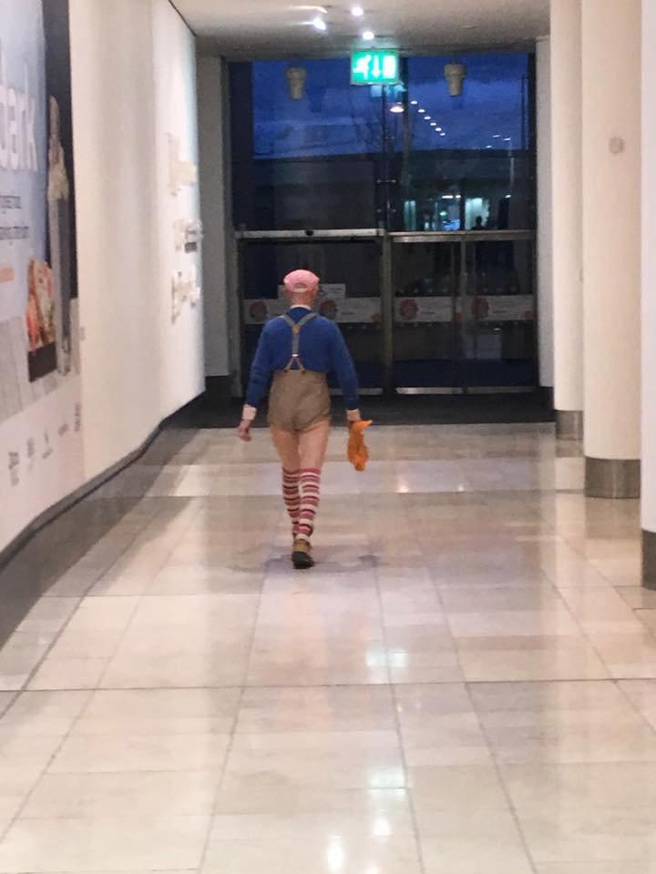 В одном из торговых центрах города Дерби в Британии посетители обратили внимание на странного пенсионера, одетого в экстремально короткий костюм мальчика-разносчика баварского пива на «Октоберфесте». На голове у пожилого мужчины была розовая кепка, передает The Sun.