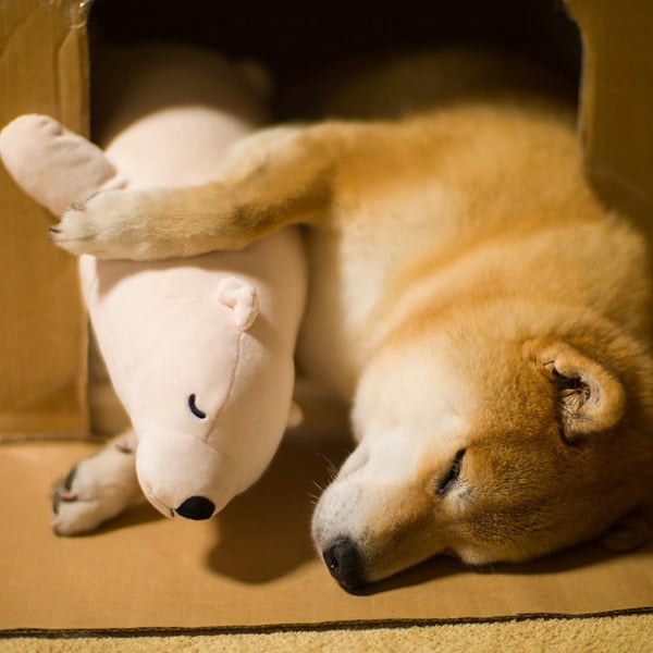Новой звездой Интернета стал милый пес породы сиба-ину Мару Таро из Японии. Бешеную популярность он приобрел после того, как в Сеть попали его фото, где собака спит вместе со своей мягкой игрушкой – белым медвежонком. Мару не только привык во сне обнимать своего тряпичного друга, но и часто спит в той же позе, что и он.
