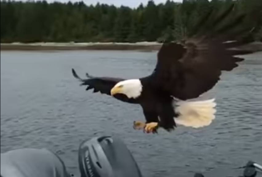«Я увидел, как этот орел кружил вдоль береговой линии, поэтому я достал камеру, рассчитывая сделать фото. Внезапно ни с того ни с сего он начал движение к моей лодке», – сказал рыбак. Этот ролик сразу приобрёл широкую популярность в сети.