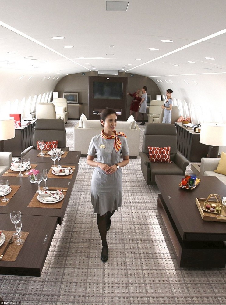 Этот частный самолет рассчитан только на 30 пассажиров, а внутри он выглядит, как просторная элитная квартира.