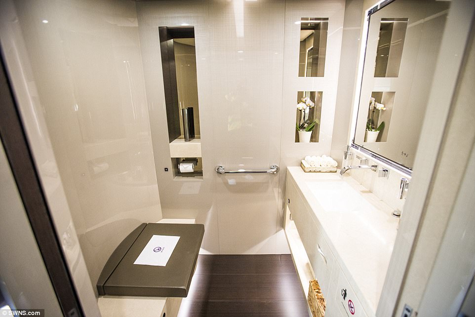 Ванные комнаты в самолете обставлены мебелью из полированного мрамора, массивной дубовой древесины и набором туалетных принадлежностей Jo Malone. Также в каюте есть место для гостей, которые хотят уединиться. Экипаж пентхауса и дворецкие размещаются в отдельных, специально отведенных для этого помещениях.