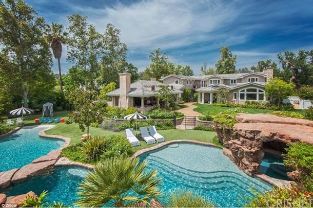 На территории особняка площадью свыше 700 квадратных метров находятся два бассейна и каскадный водопад.