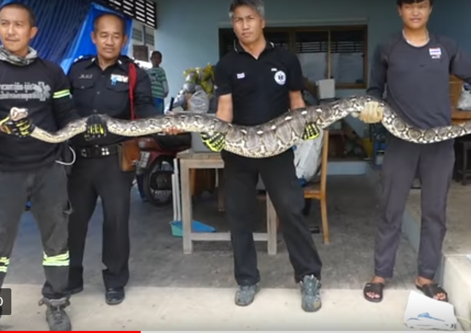 Пятиметровый питон в Таиланде проглотил кота по кличке Бобо. Эту ужасающую сцену заметил хозяин домашнего питомца и вызвал спасателей. Инцидент сняли на видео, которое собрало огромное количество просмотров на YouTube.