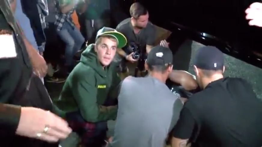 Внедорожник ударил журналиста колесом и сбил его с ног. Джастин Бибер остановил автомобиль и поспешил к пострадавшему, протянув ему руку. Однако оказалось, что парень не может встать на ноги.