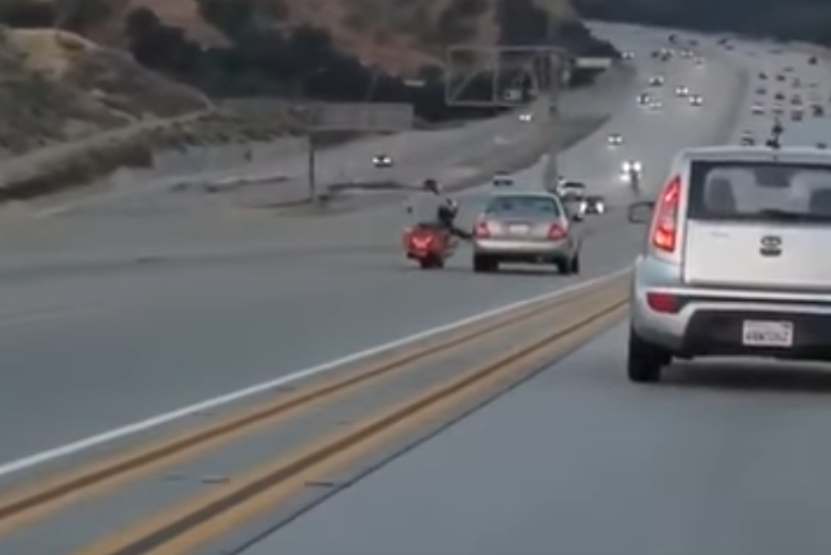 На одной из трасс Лос-Анджелеса произошла жуткая авария. Байкер без особых на то причин решил пнуть проезжающий мимо автомобиль. На что водитель машины сразу же решил отомстить и подрезать буйного мотоциклиста. Однако не справившись с управление автомобиля, он вылетел на другую полосу, зацепив другую машину, которая пострадала ещё больше.