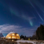 Норвежское семейство Хьертефёльгер уже три года живёт в уникальном доме, который находится за Северным полярным кругом. Их дом накрыт специальным стеклянным куполом, высота которого достигает 7,5 метров. Сам дом насчитывает три этажа, на которых расположено пять спален и две ванны.