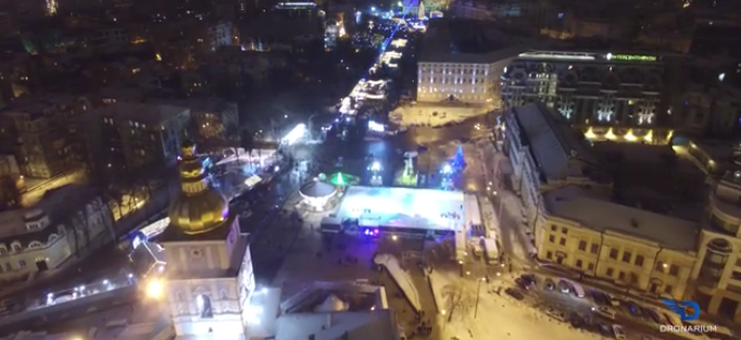 В сети опубликовано видео, как выглядело празднование Нового года в Киеве с высоты птичьего полета.