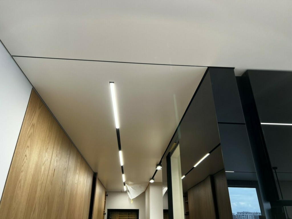 - Еще одним преимуществом натяжных потолков является их высокая степень функциональности. Они могут использоваться для создания не только привлекательного визуального эффекта, но и для решения различных практических задач. Например, натяжной потолок может скрыть неровности или дефекты поверхности старого потолка, а также использоваться для установки различных светильников или скрытого освещения.