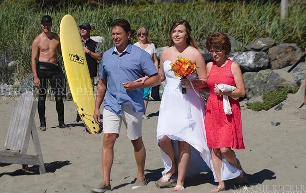 Сообщается, что автор снимка с пляжной свадьбы выложил фотографию в Facebook. Под изображением он отметил, что серферы часто попадают в кадр во время подобных церемоний бракосочетания, но полуобнаженный Трюдо едва не перетянул все внимание на себя. Свадьба проходила на одном из пляжей Тофино в провинции Британская Колумбия.