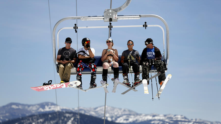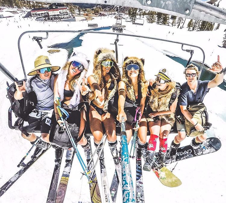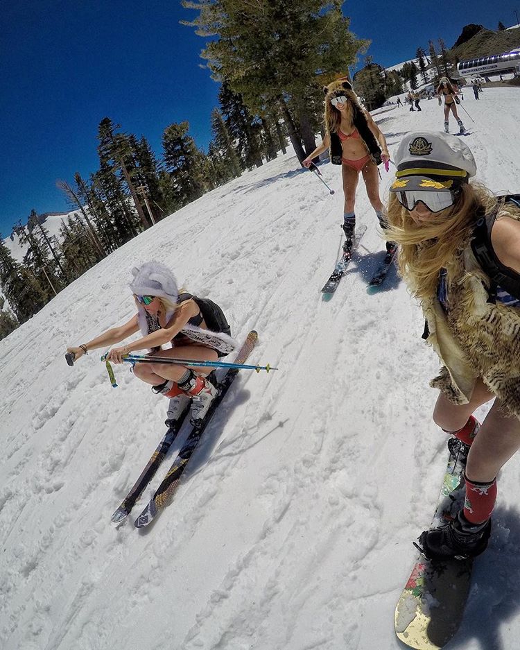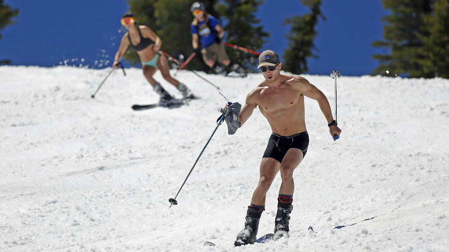 Посреди лета в Калифорнии, в горах Сьерра Невада лежит снег, который будет здесь до августа. Сюда стекаются лыжники со всей страны, а отчаянные лыжницы любят кататься, обнажившись до бикини.