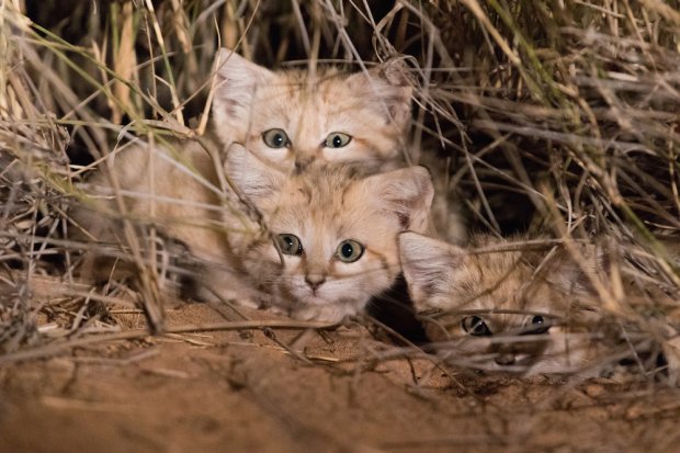 Исследователи из благотворительной организации Panthera с США впервые смогли сфотографировать котят барханной кошки в дикой природе. Чтобы найти этих невероятных детёнышей, ученым пришлось провести в пустыне четыре года.