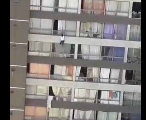 Оказалось, что на перилах 9 этажа висит женщина, которая вот-вот сорвется. В этот момент мужчина осознал, что надо ее спасать, а не снимать ее падение.