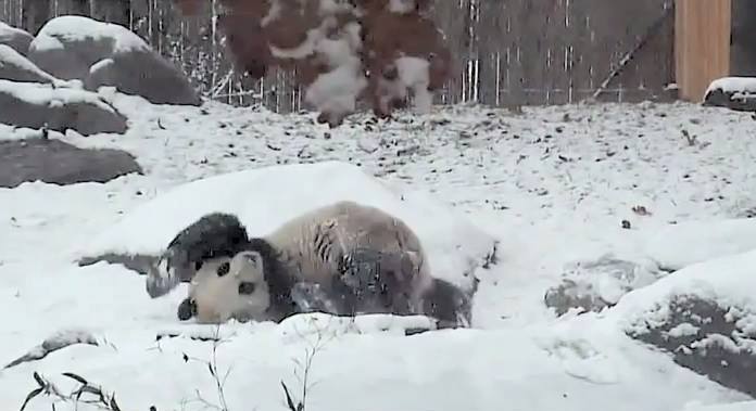 Уже известная в Интернете панда Да Мао из заповедника в Торонто, которая самозабвенно радуется снегу, вновь вызвала волну умиления у пользователей Сети.