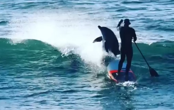 В Сети было опубликовано видео с австралийским падлбордером, которого столкнул в воду дельфин. Ролик был опубликован на Instagram-странице lubricatedsurf.