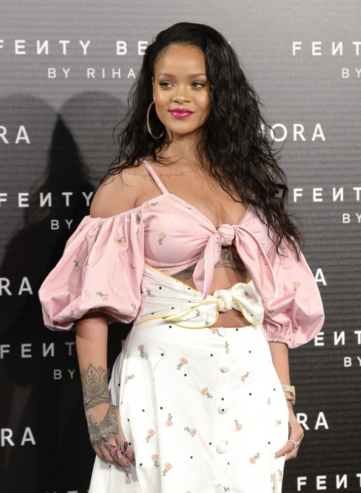 Рианна любит эффектные и запоминающиеся наряды. Сейчас певица занята промо-компанией собственной линии косметики Fenty Beauty.