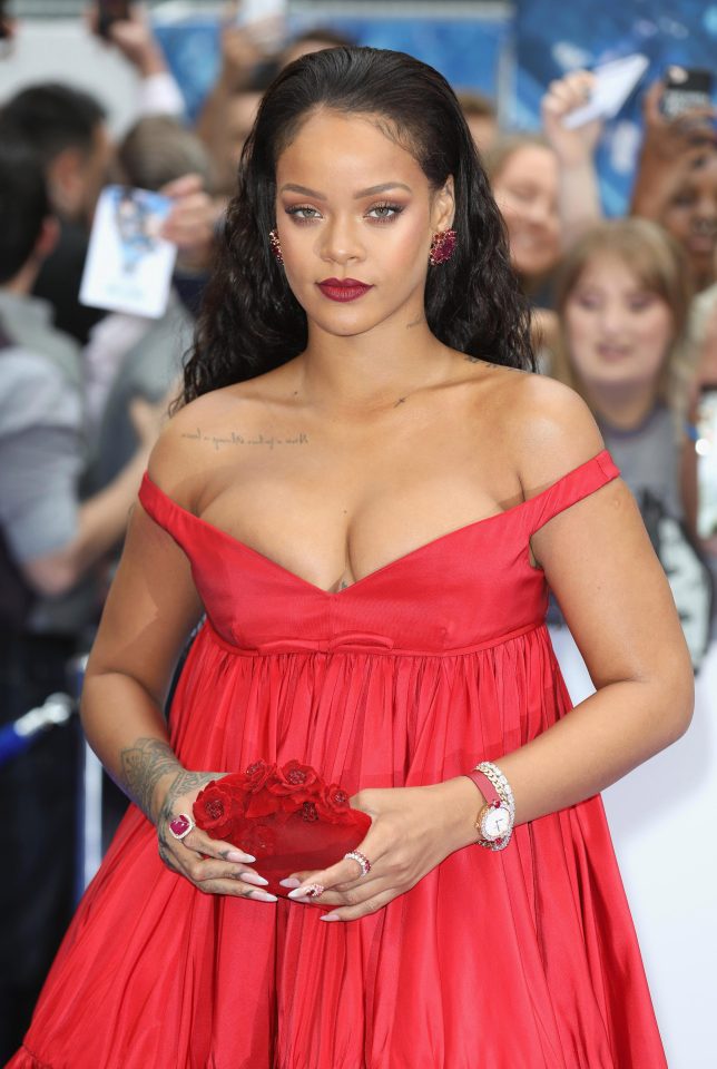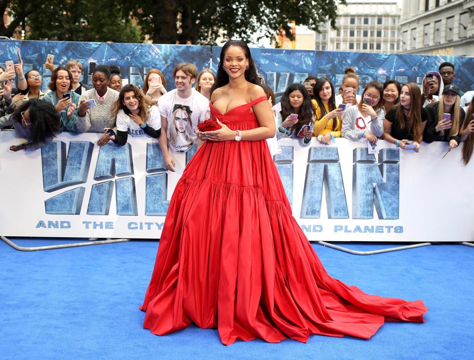 Рианна прибыла на премьеру фильма «Валериан и город тысячи планет» в экстравагантном красном платье с ошеломительным декольте. Вырез был настолько экстремальным, что. Наклонившись, ее бюст чуть не выпал наружу.
