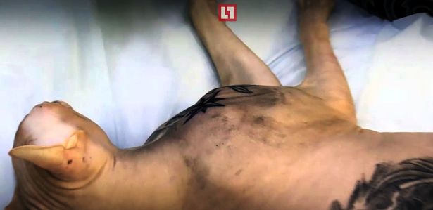 Художник по татуировкам Александр из Екатеринбурга (Свердловская область, Россия) набил четыре татуировки своему коту сфинксу по кличке Демон. Во время того, как рисунки наносились на тело животного, кот был под анестезией.