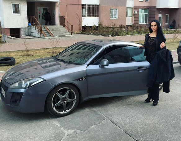 На работу девушка ездит на личном авто — тюнингованном Hyundai Coupe (Tiburon).