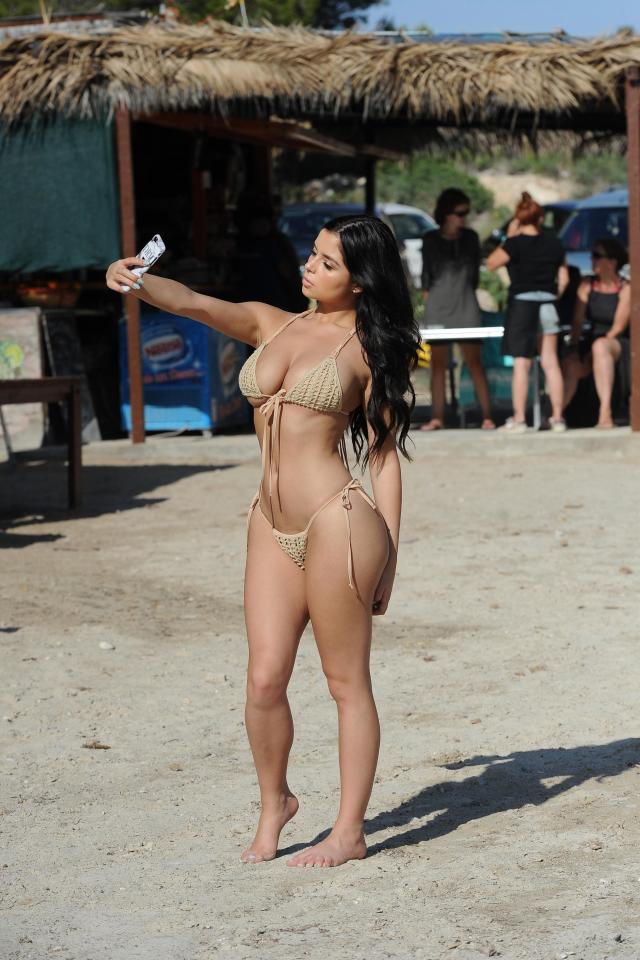 Модель и «самая сексуальная в мире DJ» Деми Роуз показала свои фото в миниатюрном вязанном купальнике, сделанные на Ибице. Мини бикини не смог вместить все аппетитные прелести 22-летней звезды и на всеобщее обозрение были выставлены самые выдающиеся части тела красотки- ягодицы и бюст.