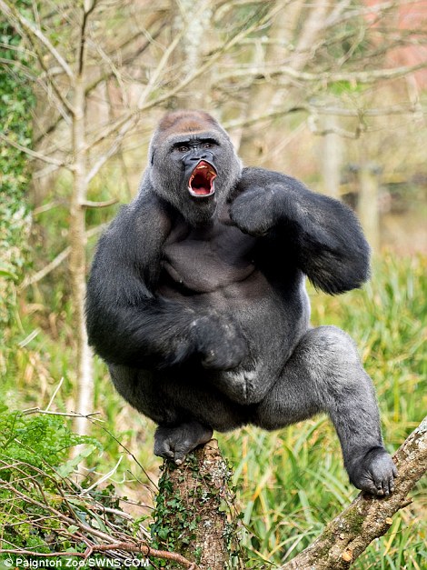 Самец западной равнинной гориллы из Пейнтонского зоопарка в Великобритании показал рабочим, кто настоящий босс. Об этом сообщает Daily Mail.